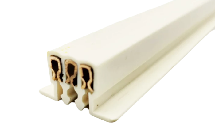 LED軌道配件,銅塑復合導電軌道 ,其優點在于銅線不松動脫落,導電導熱延伸性能均佳,含氧量穩定,氧化慢,性能優越,適用于各種高精密模具的放電加工材料或高壓電氣開關等電器配件。PP/PVC/ABS等材質,帶有銅條共擠成型,能與您的需求結合。